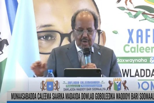 Madaxweynaha dowladda federaalka Soomaaliya oo khudbad ka jeediyay munaasabadda caleema-saarka madaxweynaha maamul-goboleedka Waqooyi Bari Soomaaliya ayaa ka hadlay arrimo kala duwan.